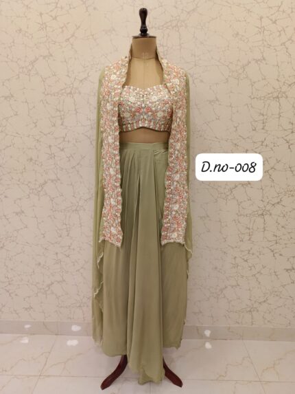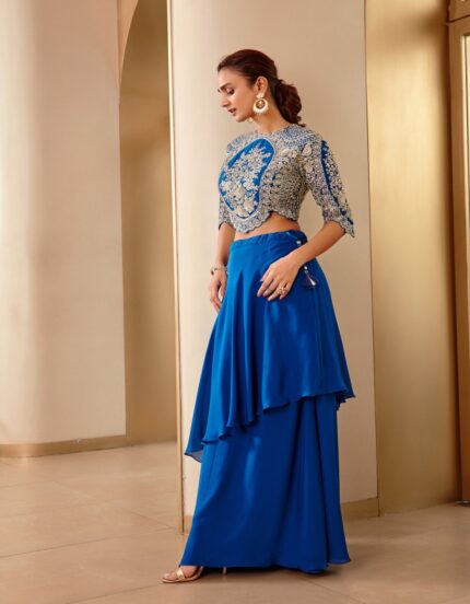 Elegant Floral Embroidered Crop Top with Flowy Palazzo and Dupatta Set
