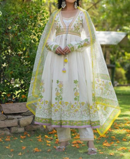 Floral Embriodered Work Anarkali Kurta with Pant and Dupatta
