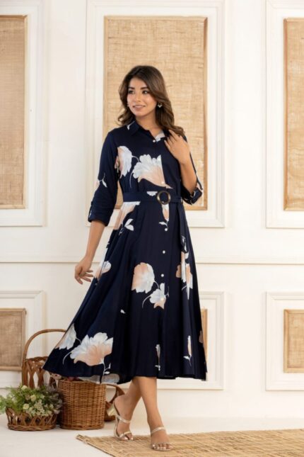 Floral Printed Georgette Dress with Hand work