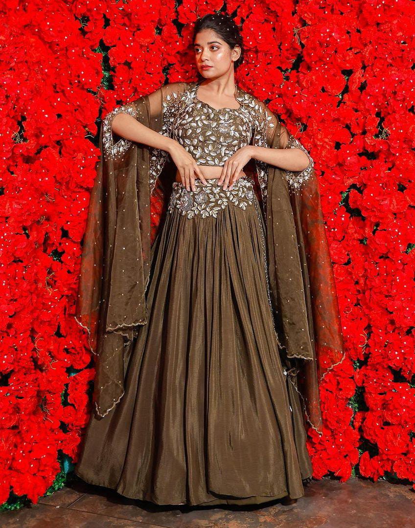 Home Shop by Event Hand work Chinon Croptop With Skirt And Jacket