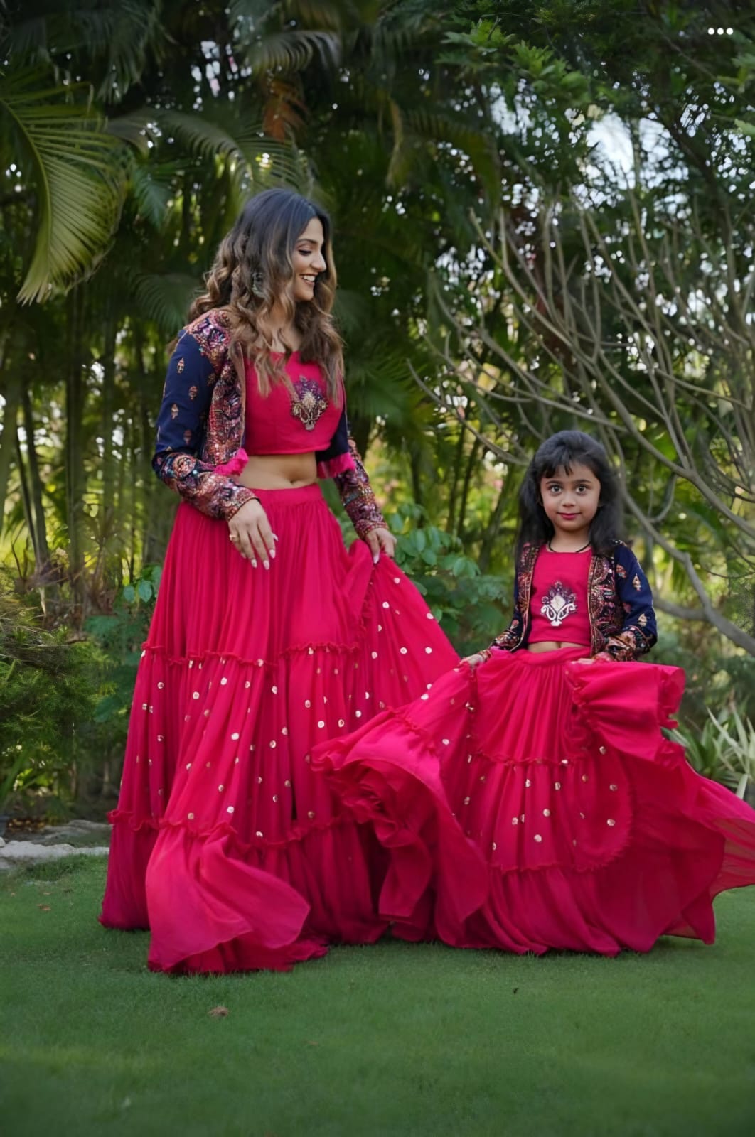 Be the first to review “Designer Mother Daughter Combo Koti Lehenga Girls Pink Indian Dress for Children and Women” Cancel reply