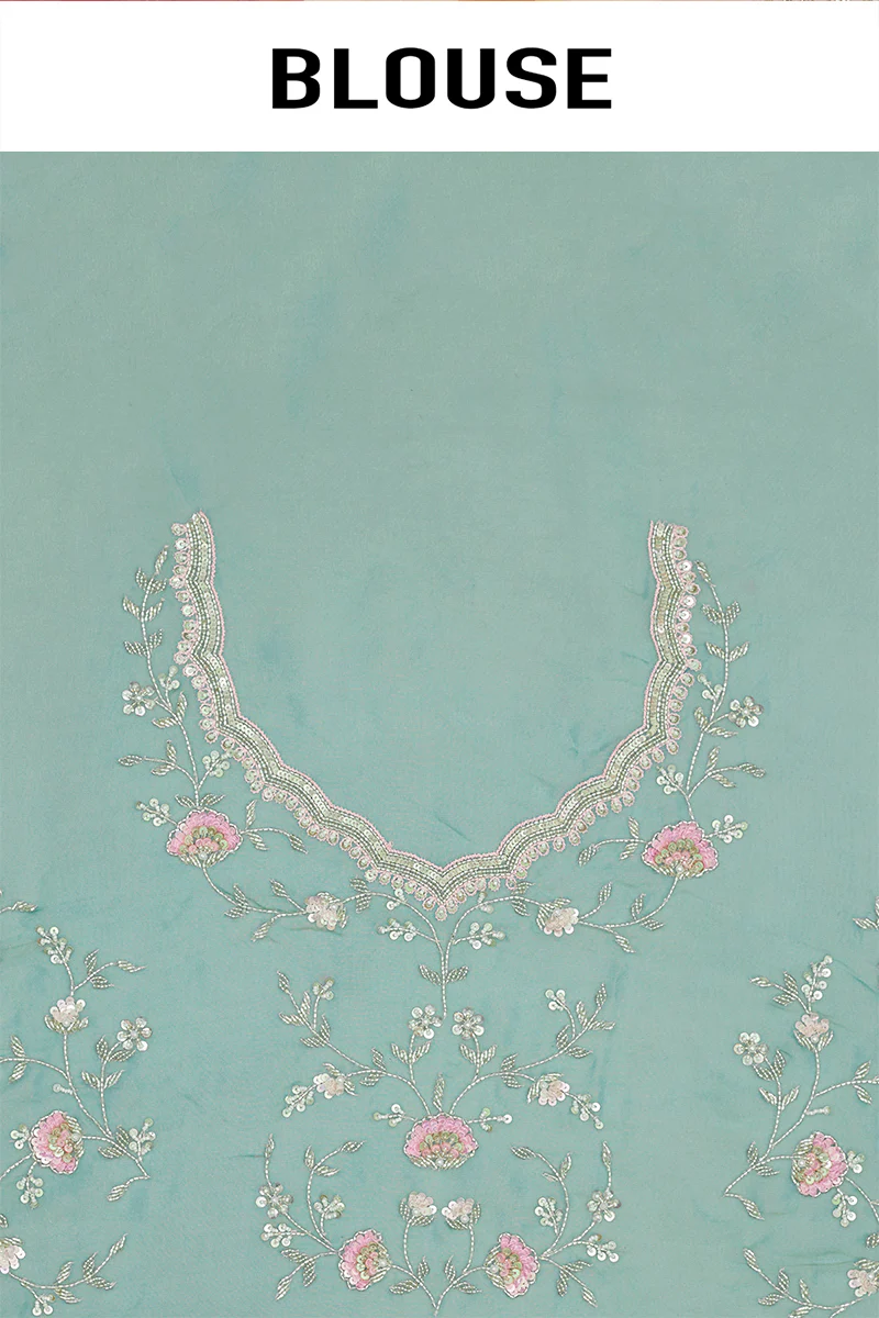 Work – Foral embroidered all over detailed with sequins & stones, pearls on border.