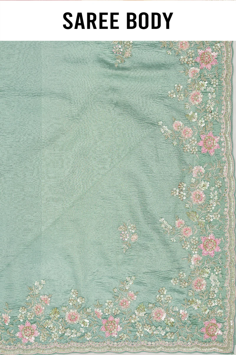 Pista Crushed Tissue Saree